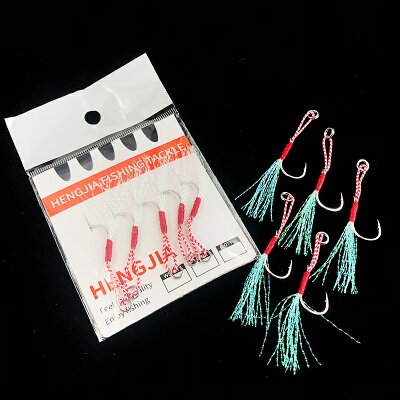 フェザースカート付アシストフック アピール力が抜群 釣り具 ティンセル付 5本セット メタルジグ ハード ルアー 選べるサイズ【ジギンガ—Z】スロージギング ロックフィッシュ キジハタ アカハタ オオモンハタ カンパチ ヤズ ブリ マゴチ ヒラメ カレイ フィッシング