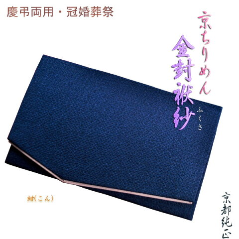国産京都【金封ふくさ:京ちりめん 紺】慶弔両用タイプ・冠婚葬祭 ネコポス無料