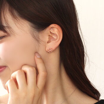 石 なし 材質 K10ホワイトゴールド/K10ピンクゴールド キャッチ K14ホワイトゴールド/K18ゴールド 大きさ リング 幅1.5mm 直径8mm 3連リング幅10mm ポスト 太さ:0.6mm 長さ:8mm 品番 P1012617-8ピアスホールが1つでも大丈夫な3連ピアス! あっというまに、大変身・・!? カラーゴールドピアス・タタン こちらはK10のページです >>K18はこちら<< 「いつもと違うシルエットで、ちょっぴり大胆に」 こちらは大人気の作品「NANA」の ピアスを出して、というお客さまからの リクエストにおこたえして限定入荷! ピアスホールをたくさんあけたいけれど なかなか挑戦できなくて・・ そんなお客さまの声におこたえして、 たくさんホールがあいているように見える めずらしいデザインのピアスを 2色のカラーゴールドでお作りしました! パッと見には、どうなってるの?と 考えこんでしまいそうな、不思議なフォルム。