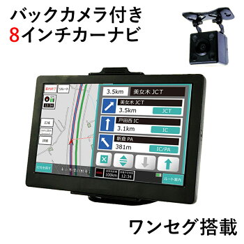 8インチ ポータブルナビ 【 バックカメラ セット ワンセグ 】タッチパネル ナビ ポータブル カーナビ TV テレビ 録画 音楽 動画 再生 AC DC シガーソケット 3電源 12V 24V 対応 車 車載 ナビ 地図 バックカメラ連動 トラック 大画面 送料無料
