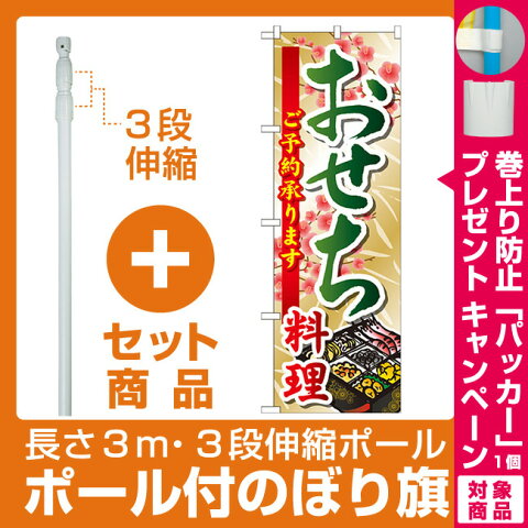 【プレゼント付】【セット商品】3m・3段伸縮のぼりポール(竿)付 のぼり旗 おせち料理 (SNB-804)